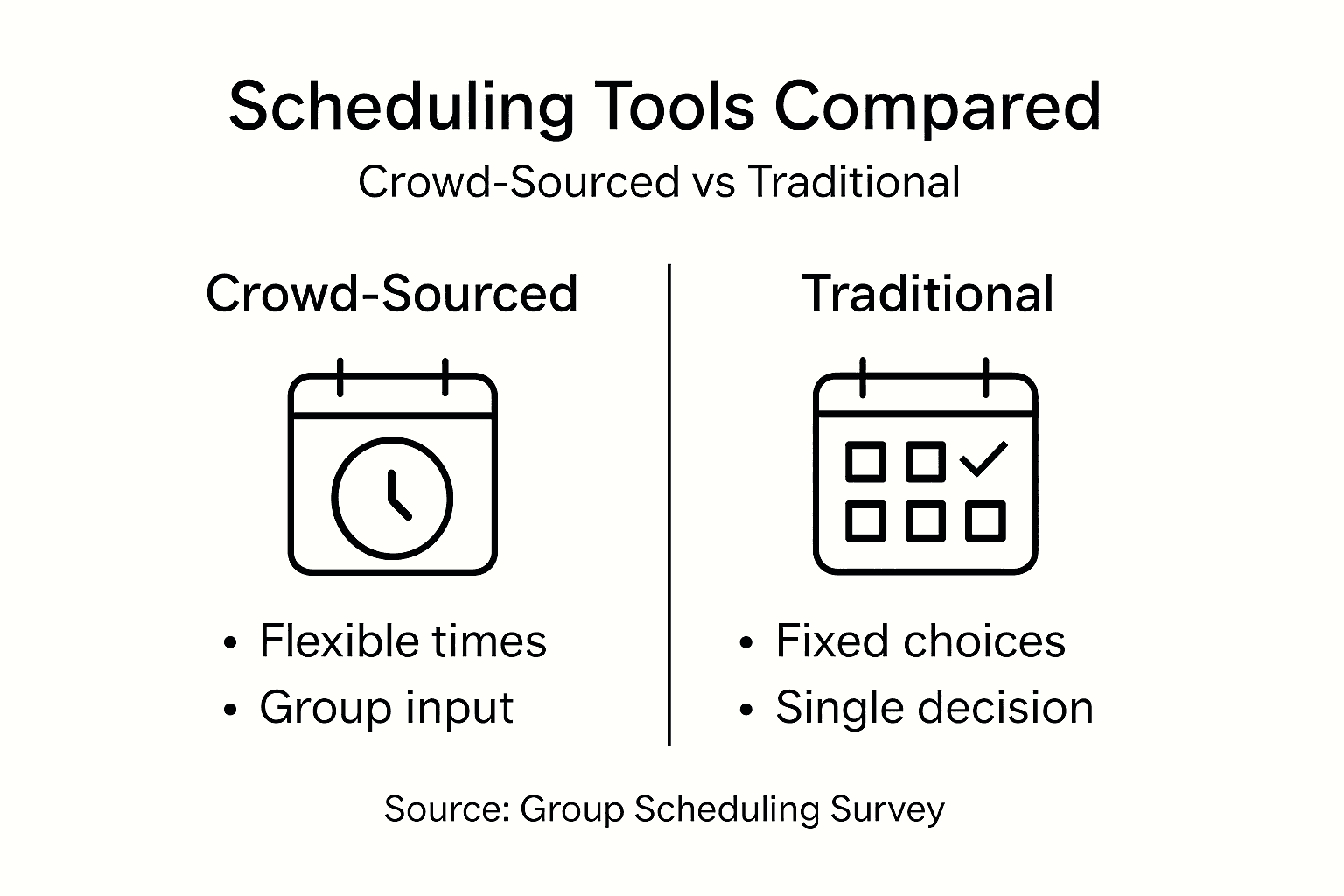 The table below compares key features of crowd-sourced scheduling tools versus traditional scheduling methods: