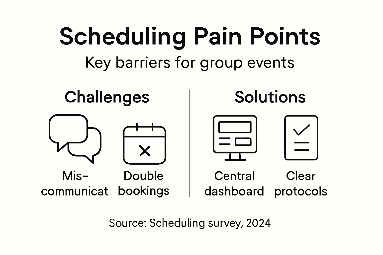 Scheduling headaches derail almost half of all corporate group events before they even start, with many american organizers feeling the weight of constant calendar clashes. The sheer complexity of aligning multiple departments, global teams, and varying priorities quickly transforms simple plans into logistical stress for even the most seasoned planners. This article equips event professionals with fresh strategies to identify and overcome common scheduling pain points that can threaten the success of any multi-day company retreat or meeting.